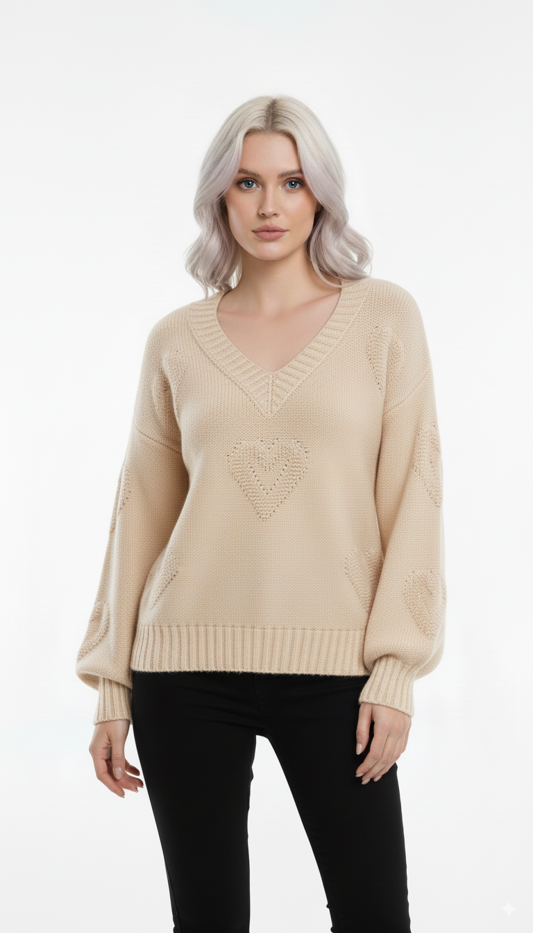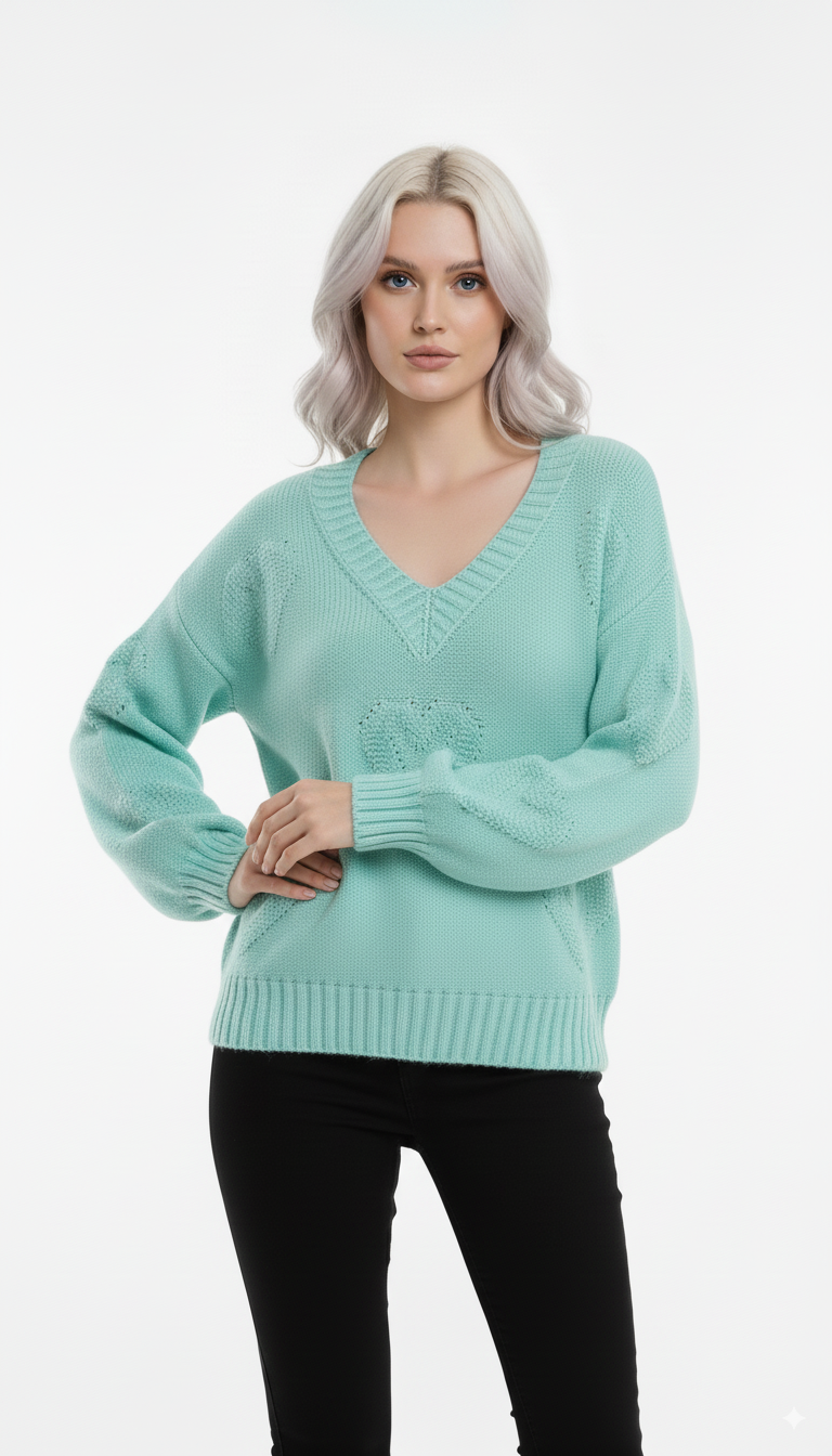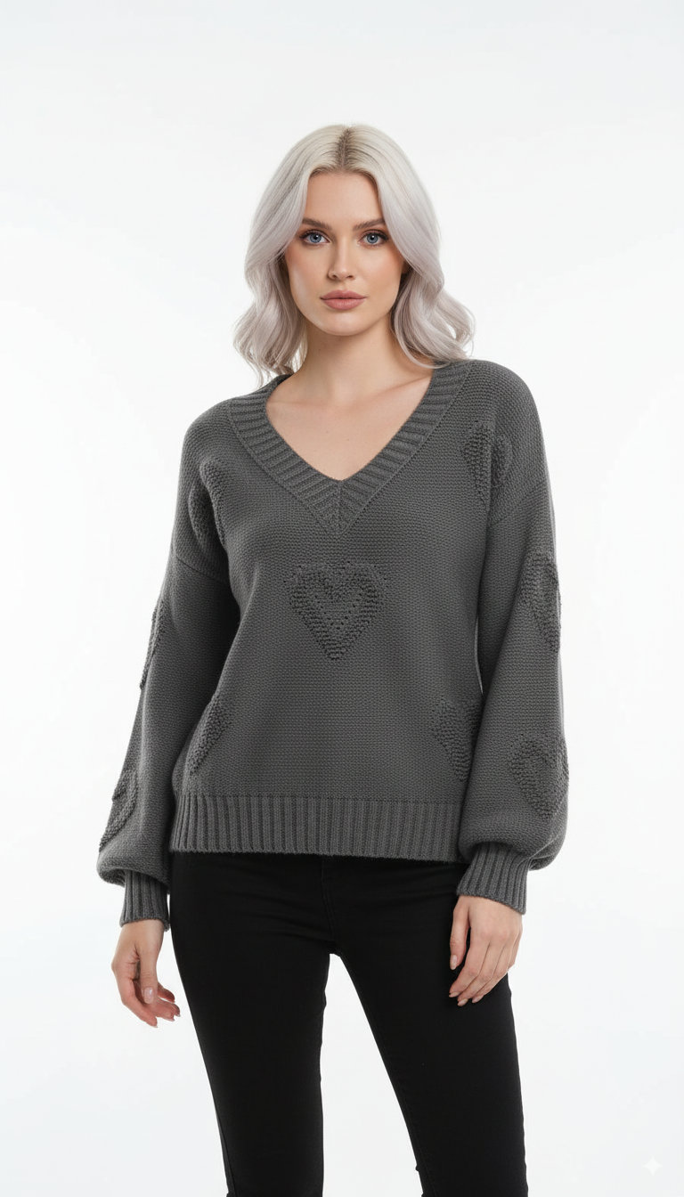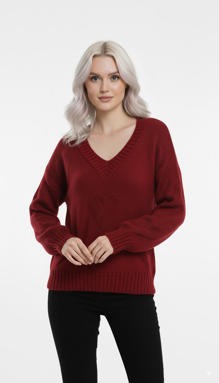 A Blusa Coração é delicada e cheia de charme, perfeita para quem gosta de unir estilo e romantismo. Produzida em tricot macio, traz detalhes em relevo no formato de coração que deixam a peça ainda mais especial. Com decote em V e mangas longas, oferece conforto e versatilidade, podendo ser usada em looks casuais ou em produções mais elegantes.