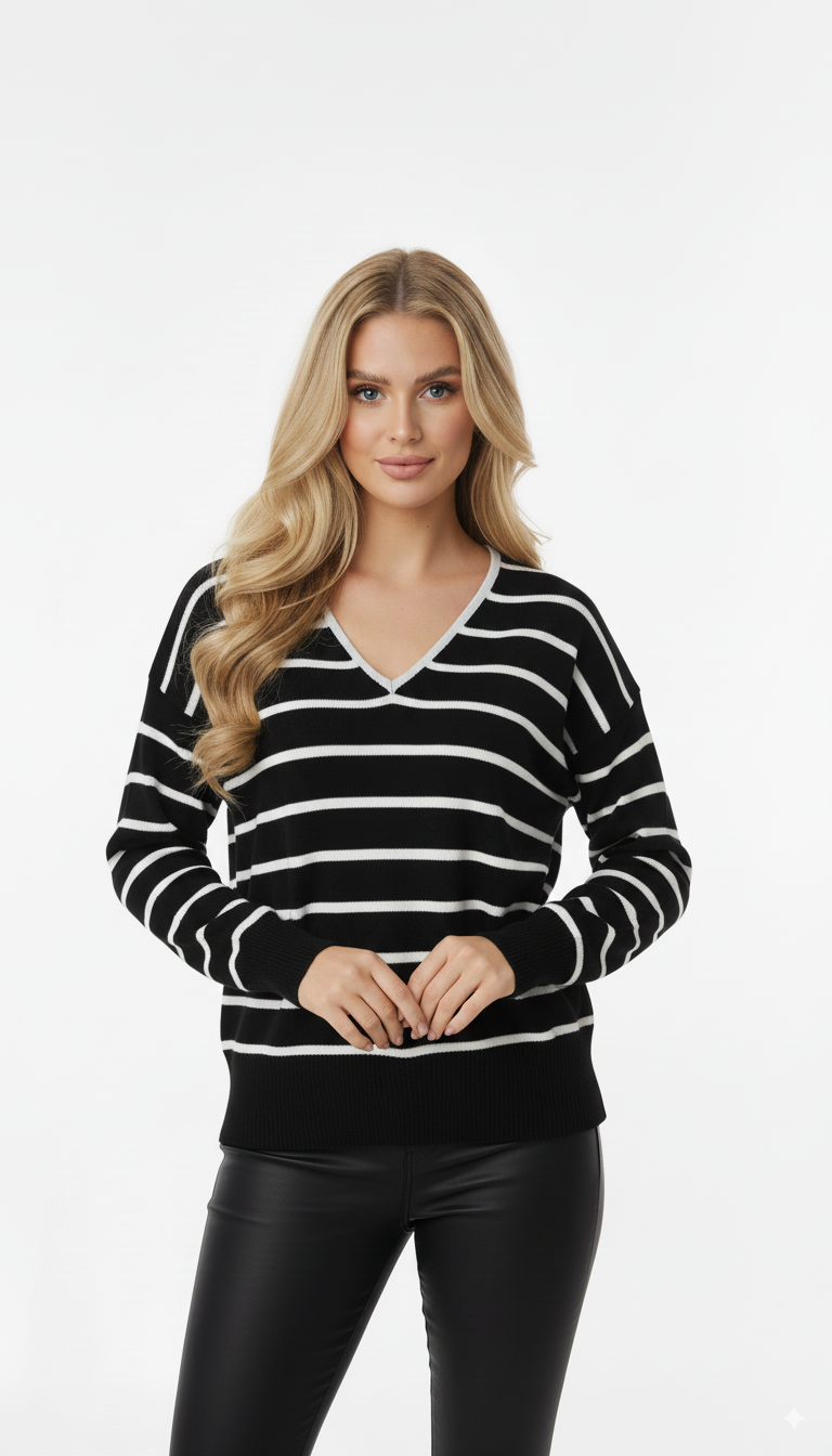 A Blusa Listrada Plus Size é ideal para quem busca conforto e estilo em uma única peça. Confeccionada em tricot de alta qualidade, possui caimento leve que valoriza a silhueta com elegância. Seu design com listras clássicas e decote em V garante versatilidade, permitindo combinações modernas para o dia a dia ou ocasiões mais sofisticadas. Uma peça atemporal que une praticidade e sofisticação.