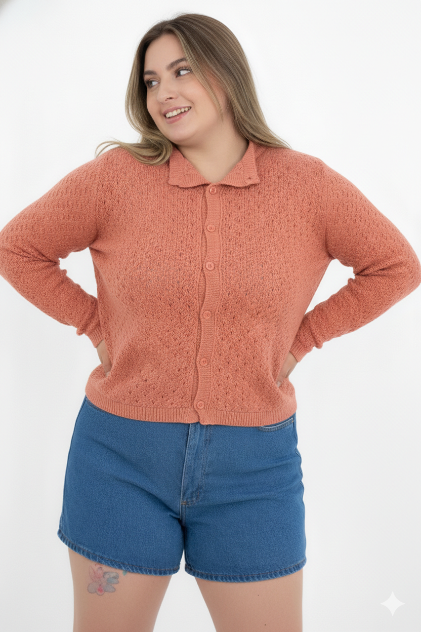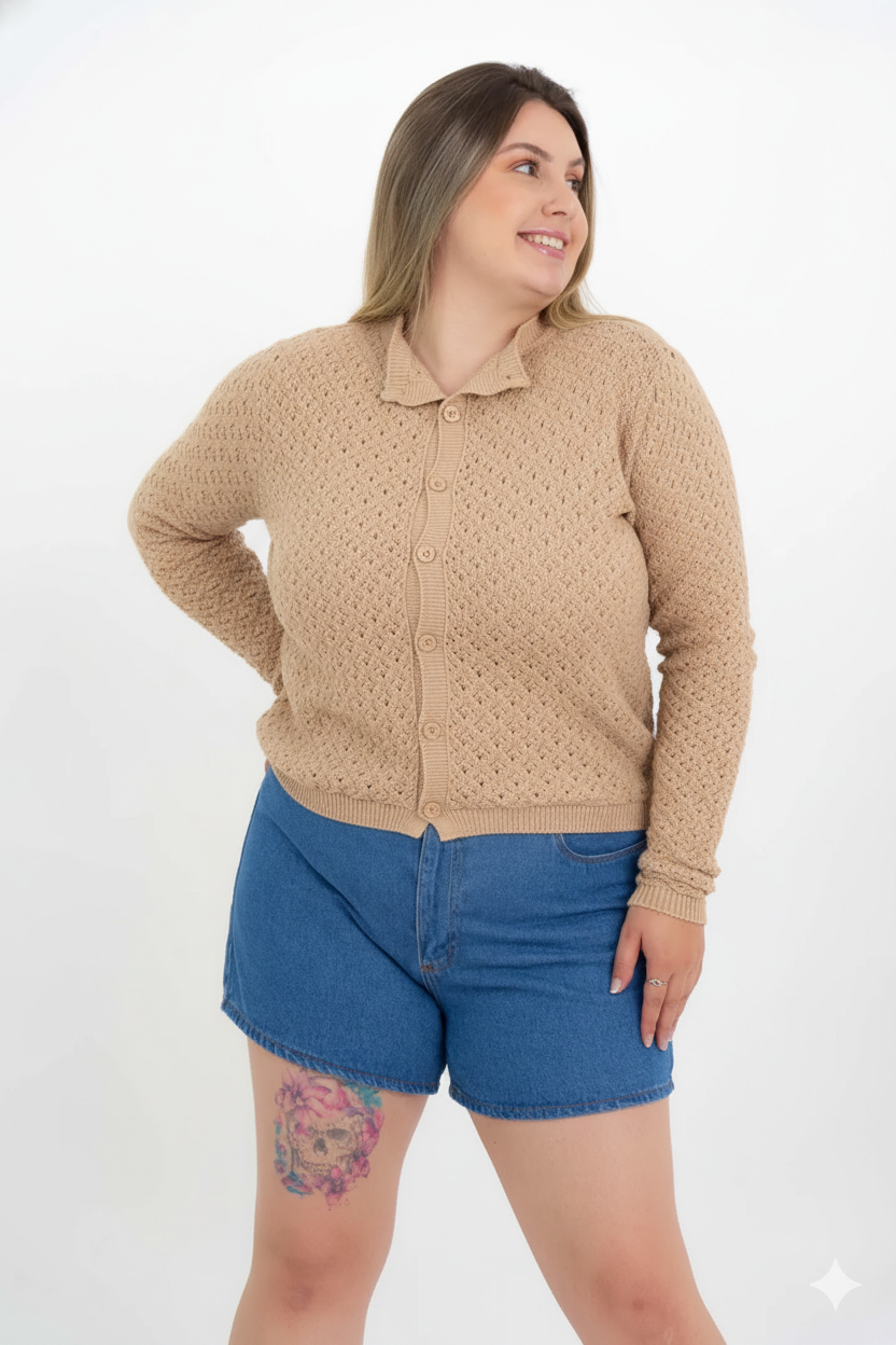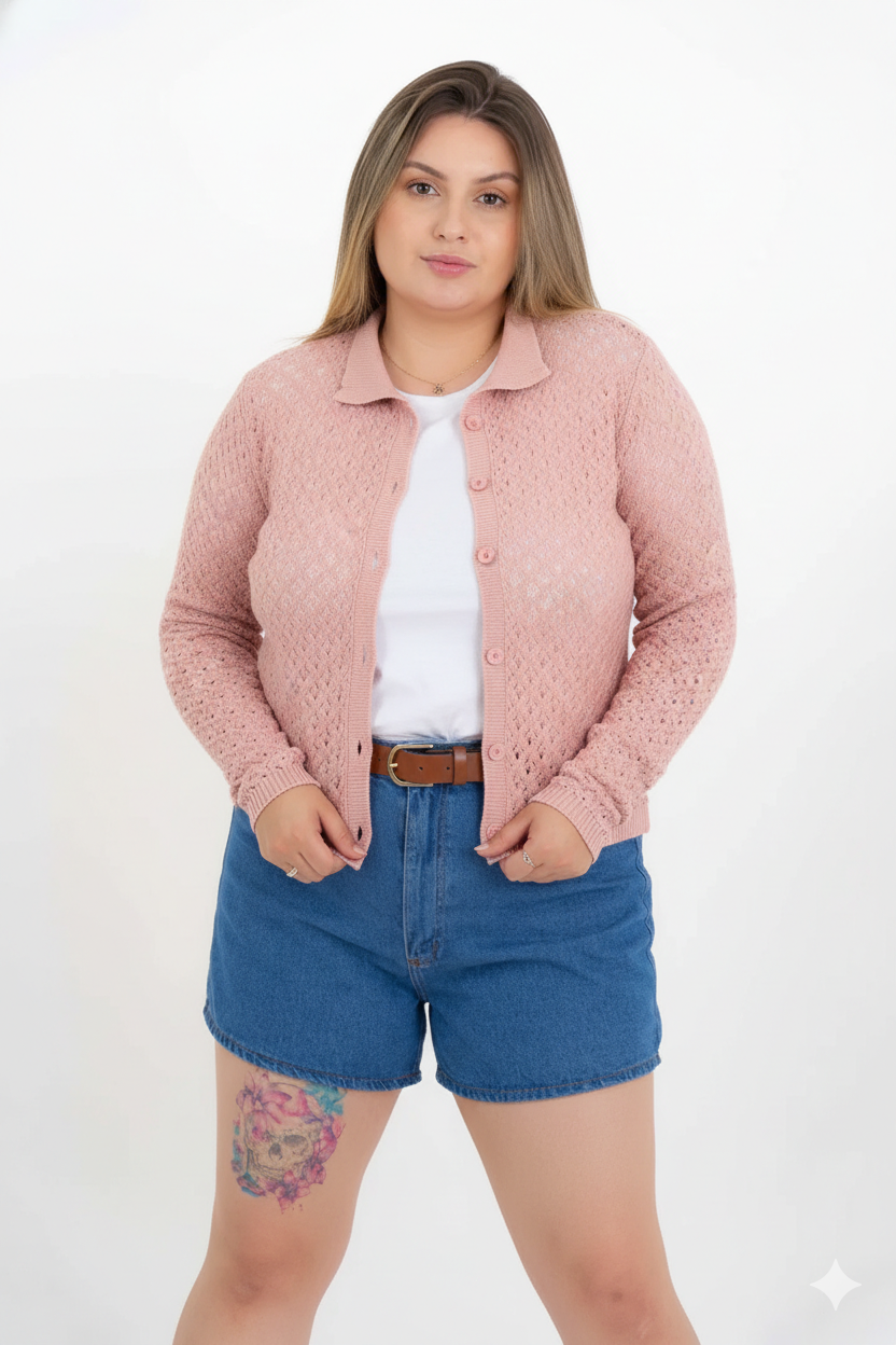 O Casaco Modal Rendado é a peça ideal para quem busca um toque de sofisticação no dia a dia. Feito em modal premium, esse casaco de tricot possui um trabalho rendado delicado, garantindo leveza e elegância à peça. O fechamento frontal por botões permite diferentes formas de uso, tornando-o versátil para diversas ocasiões.