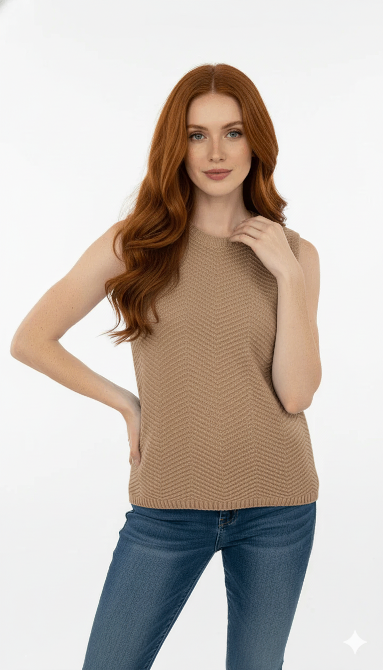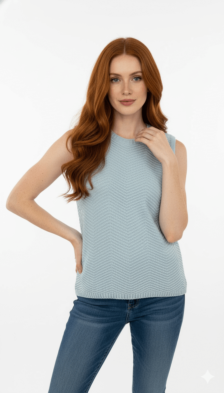O destaque da peça está no ponto em relevo estilo zig zag, que cria um visual moderno e sofisticado. Sua modelagem reta e gola careca garantem versatilidade, ideal para ser usado sozinho ou sobre camisas e blusas, compondo looks estilosos em qualquer estação.