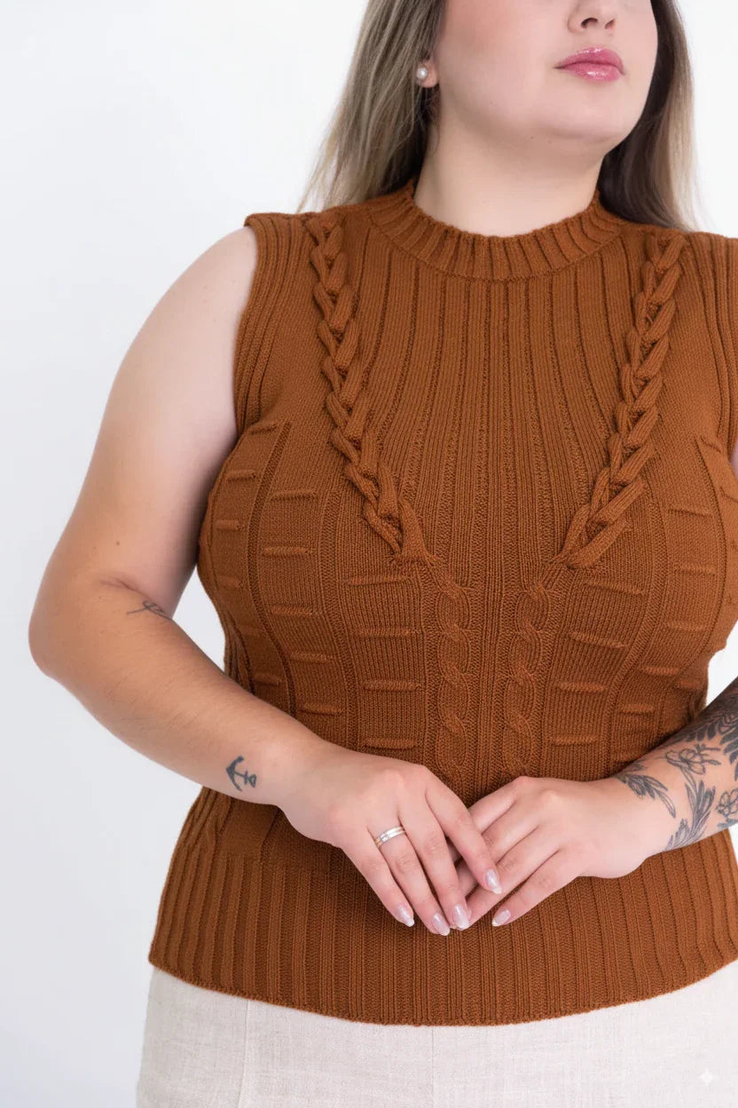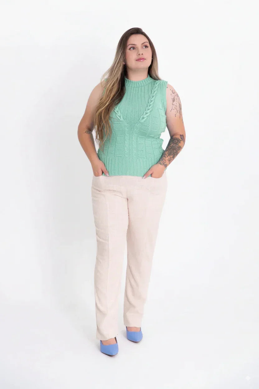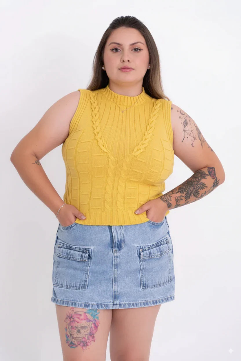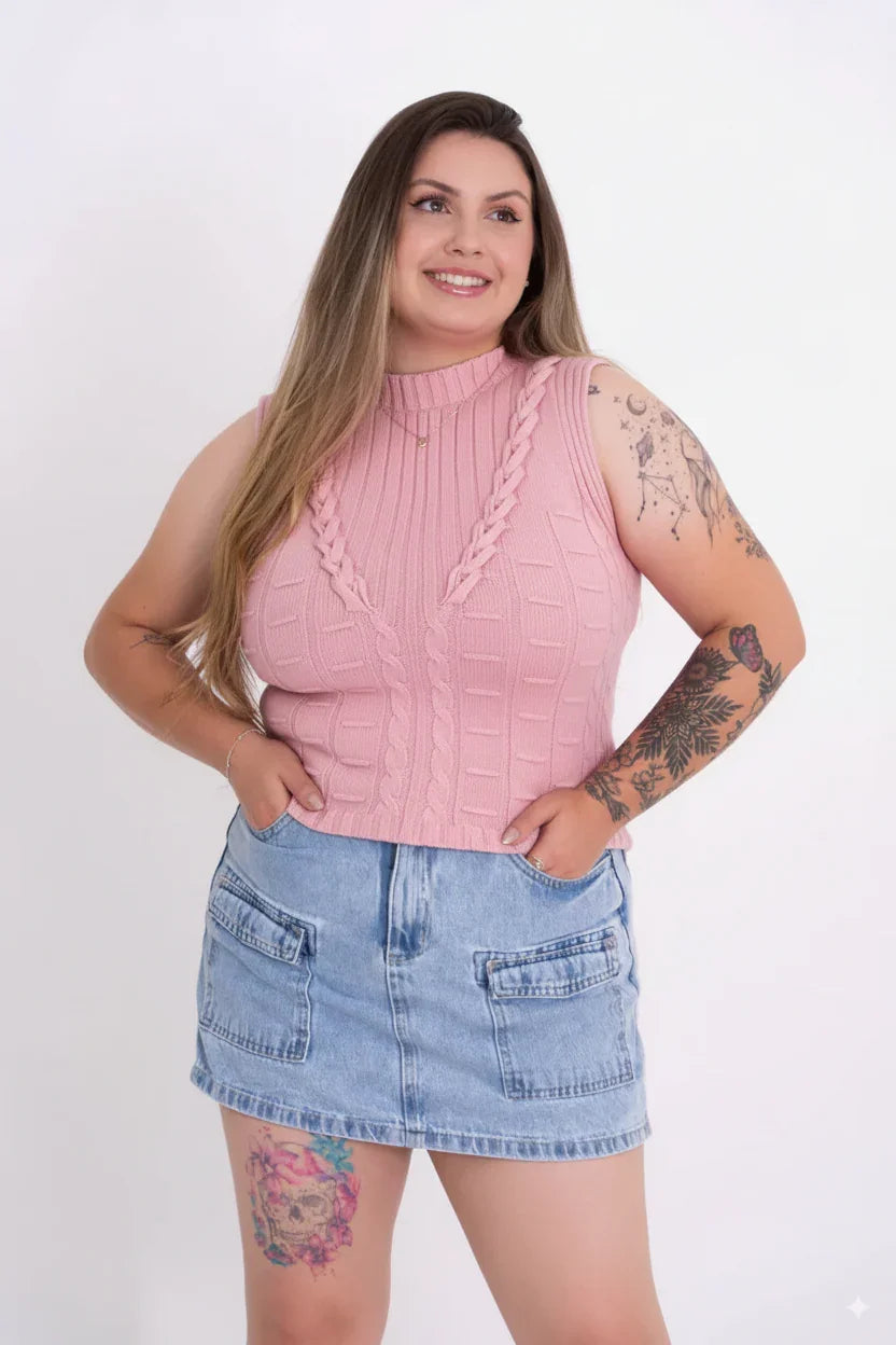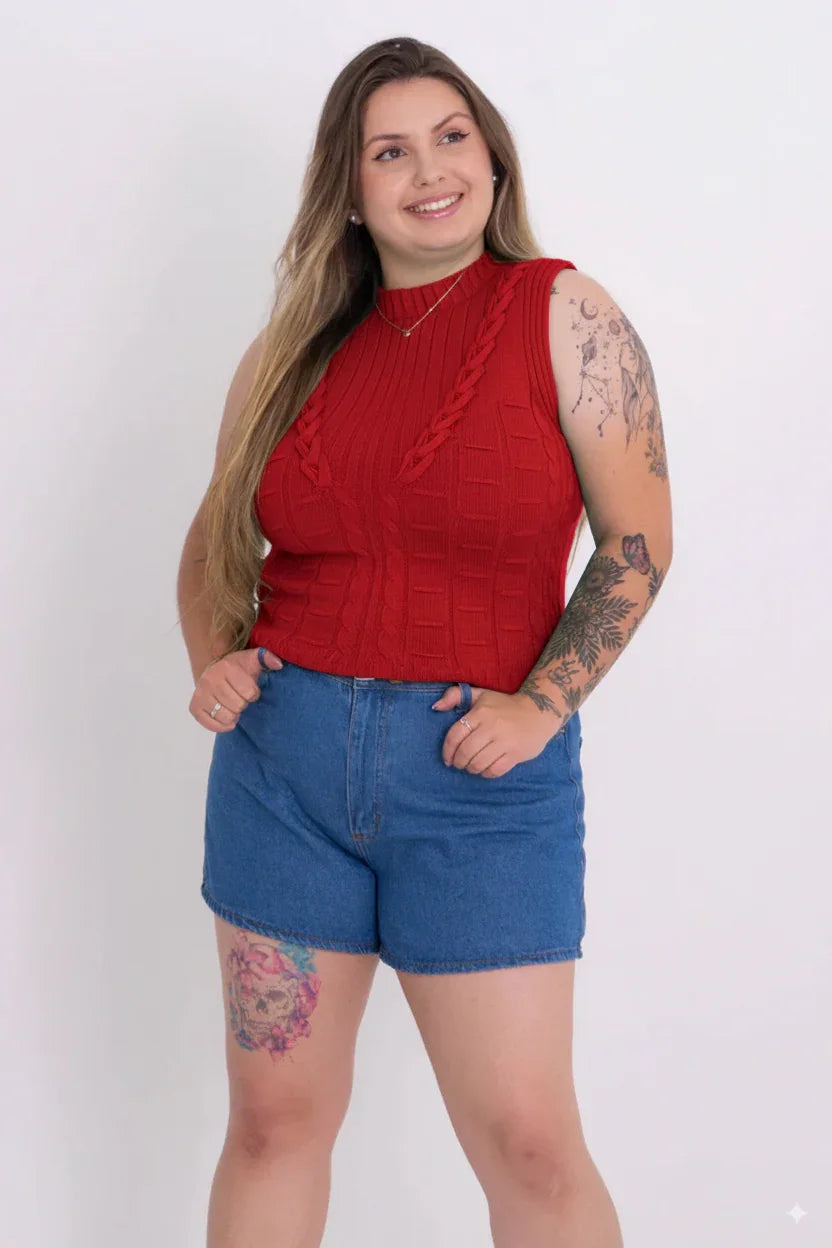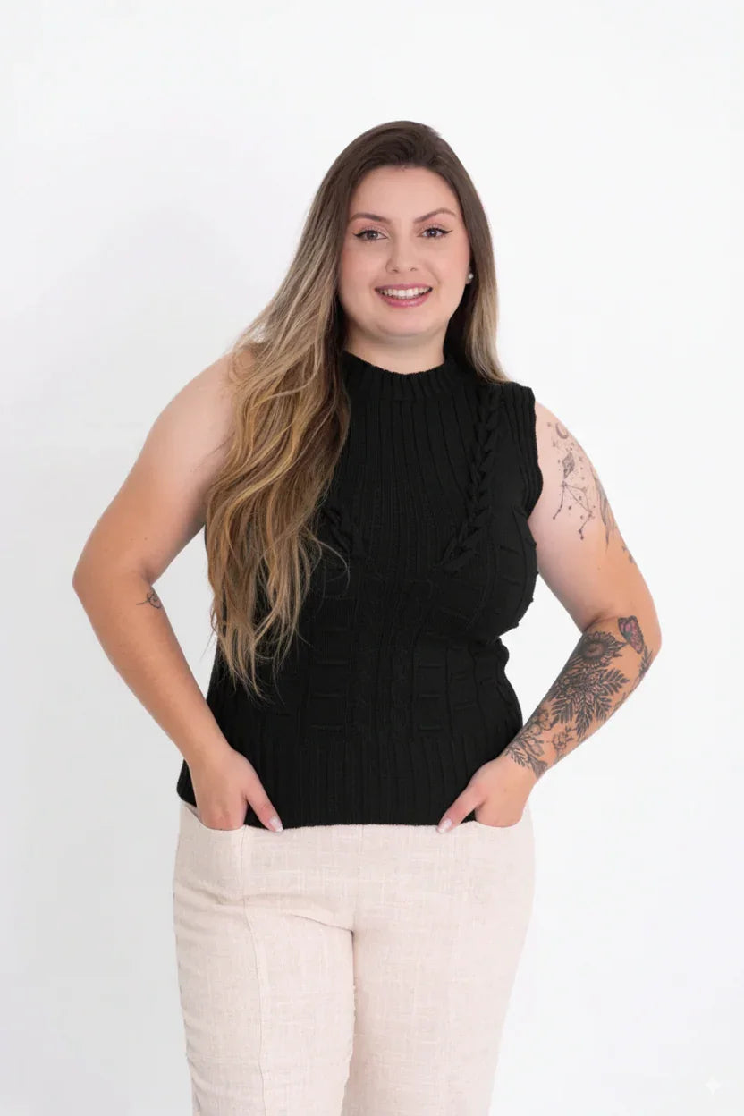 Seu design moderno e versátil permite diversas combinações, seja com shorts, saias ou calças, criando looks casuais e descontraídos. A modelagem sem mangas e o caimento ajustado valorizam a silhueta feminina, enquanto o decote em U acrescenta um toque de elegância ao visual.