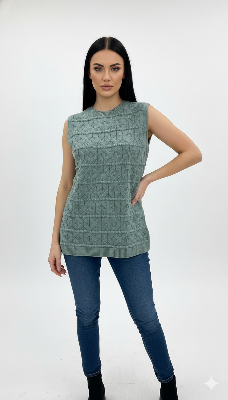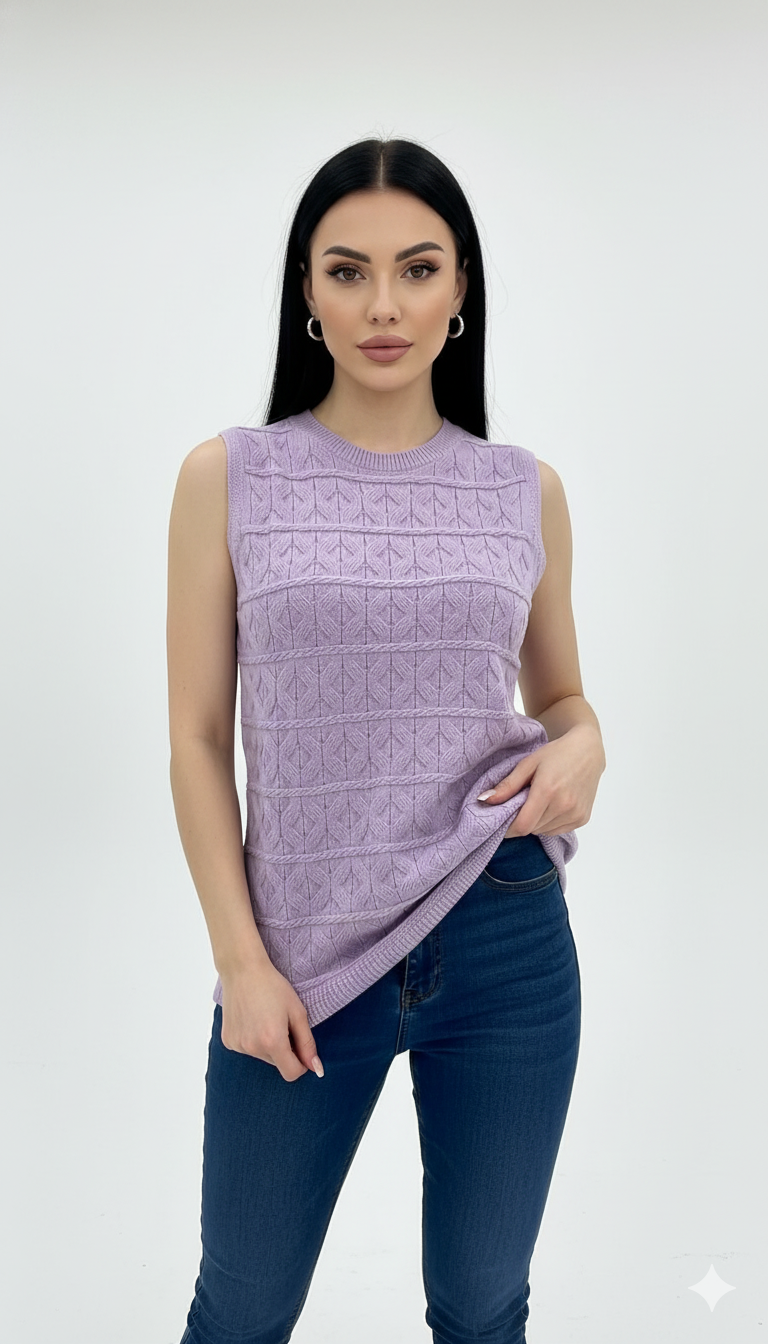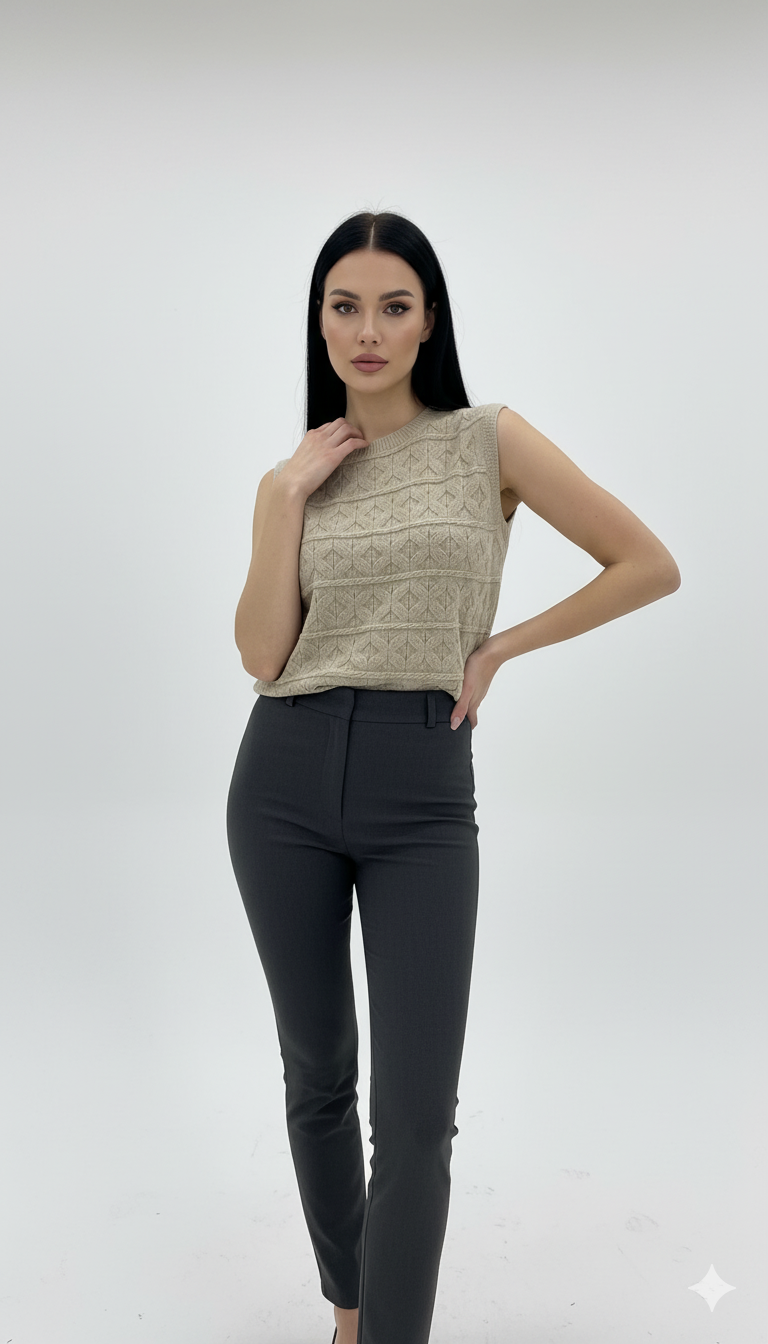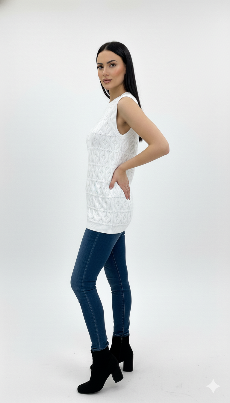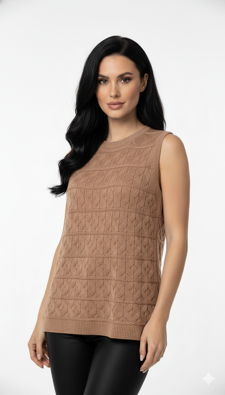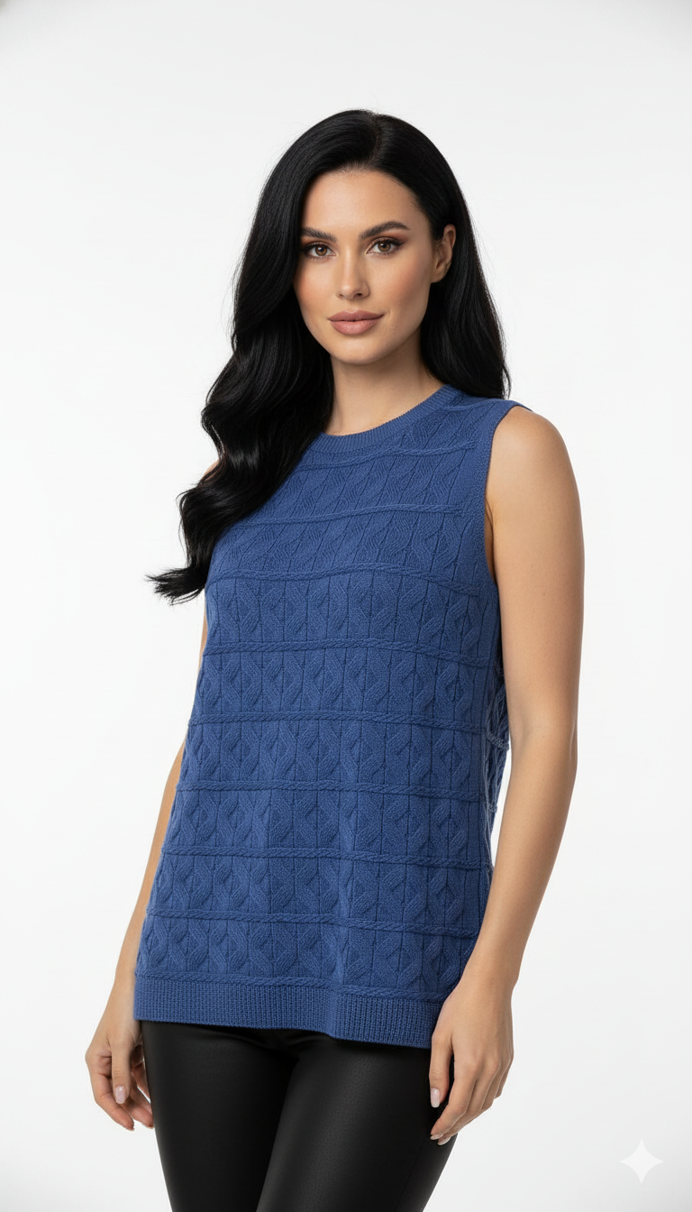Regata Trama Trançada Feminina em Tricot é a escolha ideal para quem busca sofisticação, conforto e versatilidade em uma única peça. Confeccionada em tricot de alta qualidade, apresenta trama trançada em relevo, que agrega textura e elegância ao visual.
