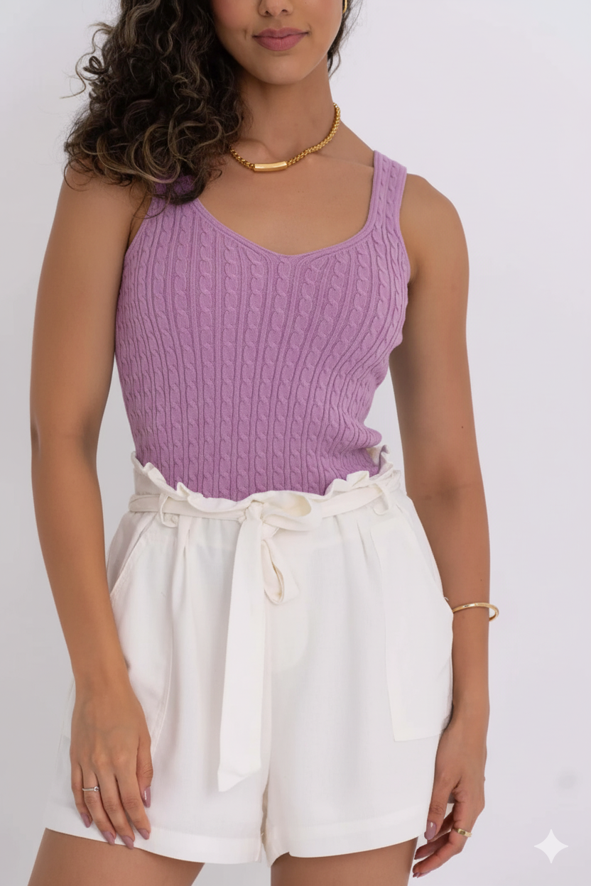 Para compor looks modernos e versáteis. Com textura canelada e modelagem ajustada, essa peça é perfeita para dias quentes, combinando estilo e frescor. Ideal para usar com shorts, saias ou calças de cintura alta. Feita com tricot de alta qualidade, proporciona conforto e durabilidade.