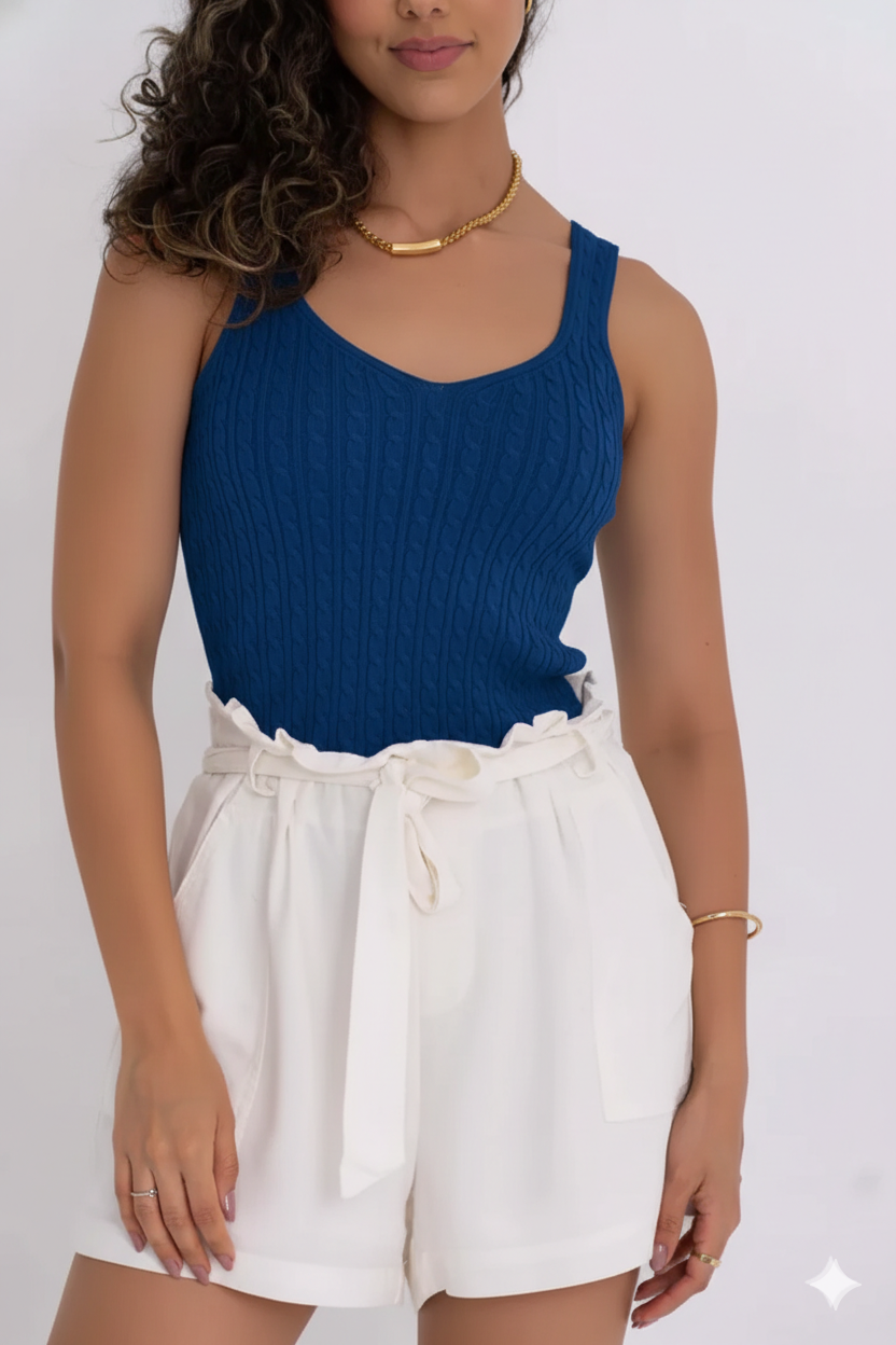 Para compor looks modernos e versáteis. Com textura canelada e modelagem ajustada, essa peça é perfeita para dias quentes, combinando estilo e frescor. Ideal para usar com shorts, saias ou calças de cintura alta. Feita com tricot de alta qualidade, proporciona conforto e durabilidade.