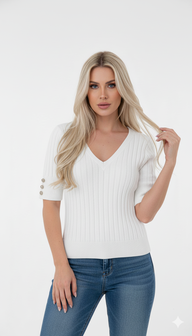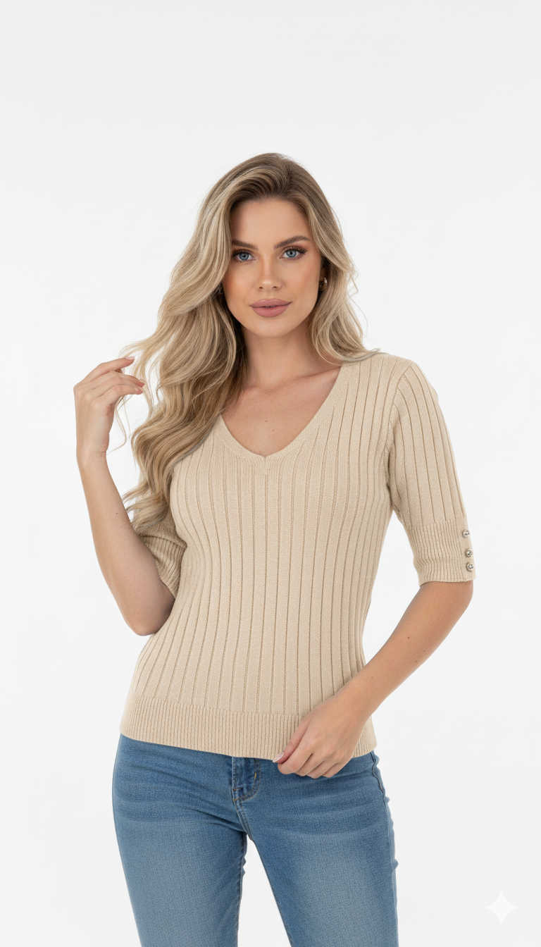 A Tshirt Botões é a escolha perfeita para unir praticidade e estilo. Confeccionada em fio de alta qualidade, possui textura canelada que valoriza a silhueta e detalhes em botões na manga que adicionam charme e sofisticação ao look. Versátil, pode ser usada tanto em composições casuais quanto em produções mais elegantes, combinando facilmente com jeans, saias ou peças de alfaiataria.