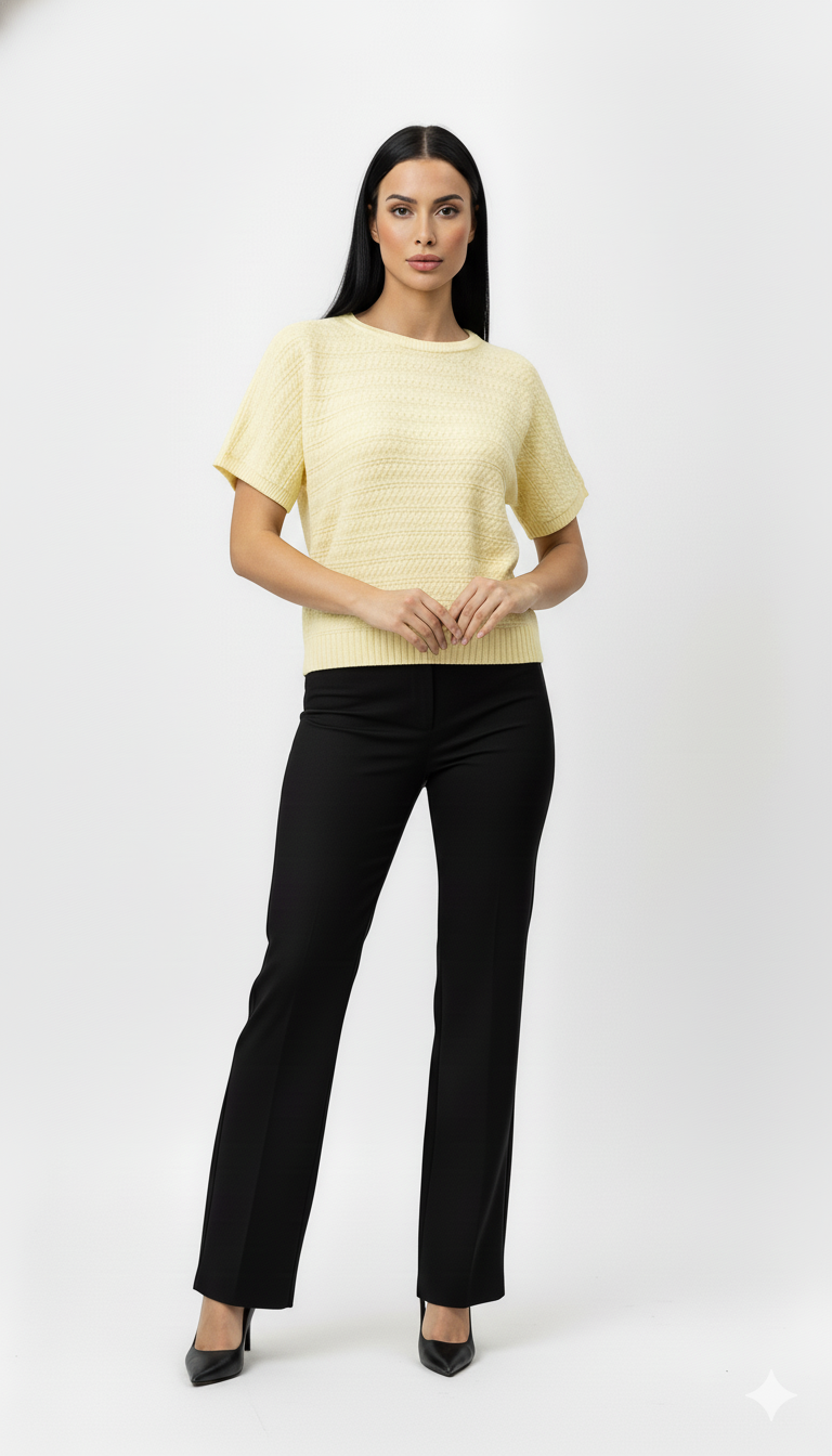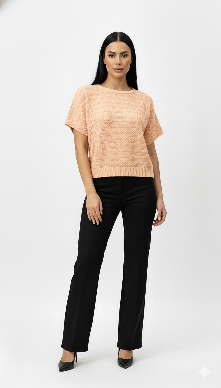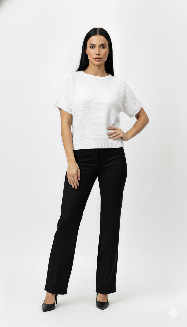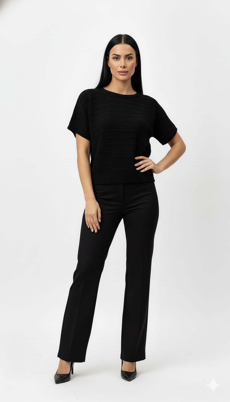 A T-shirt Morcego Vazadinha Tricot Feminina é a escolha ideal para quem busca conforto, elegância e leveza no dia a dia. Confeccionada em tricot modal de alta qualidade, a peça possui textura delicada com pontos vazados sutis, que proporcionam um toque sofisticado e moderno ao visual.