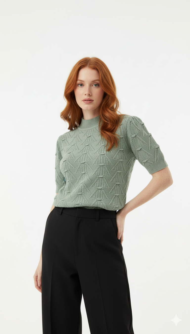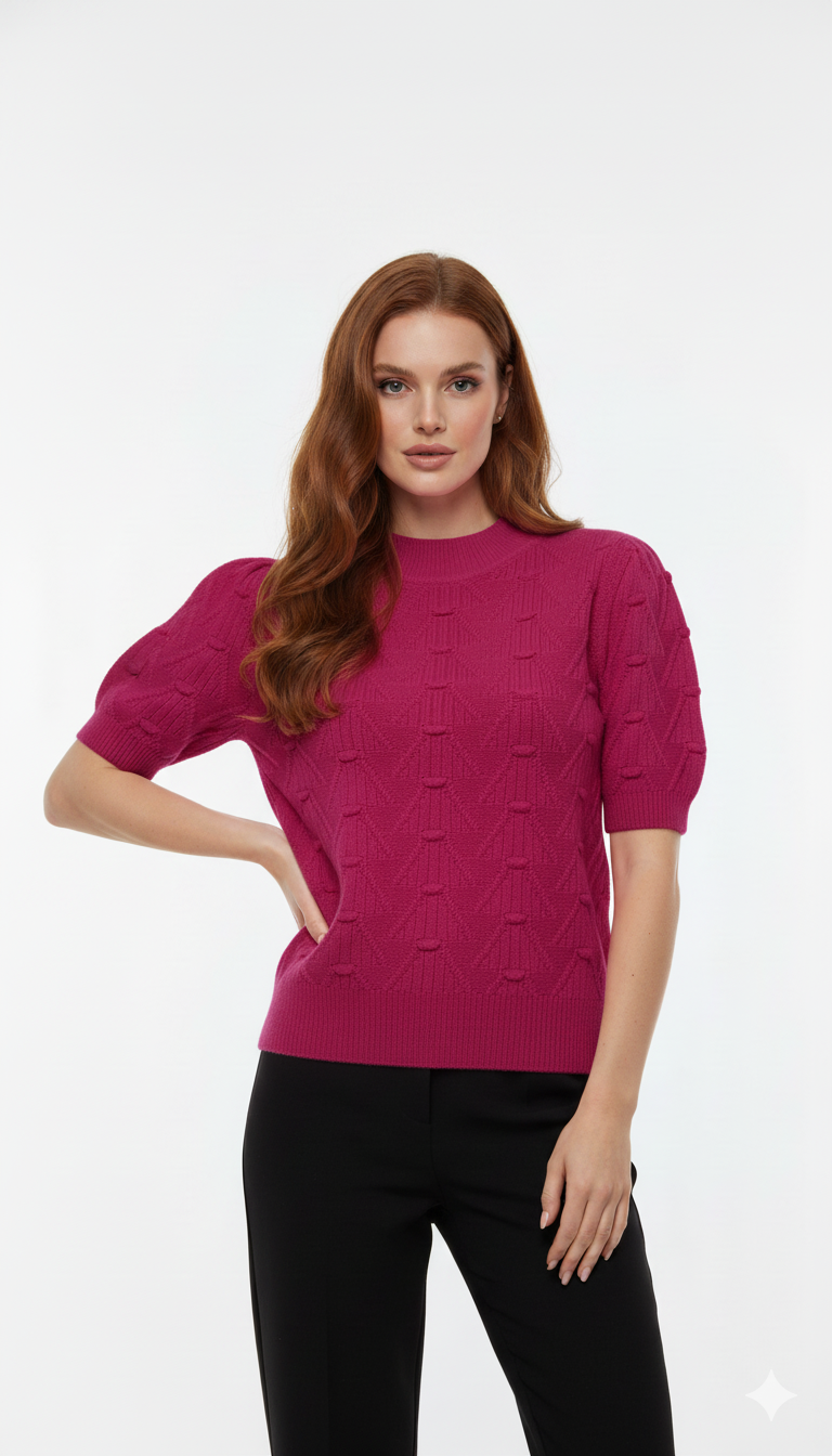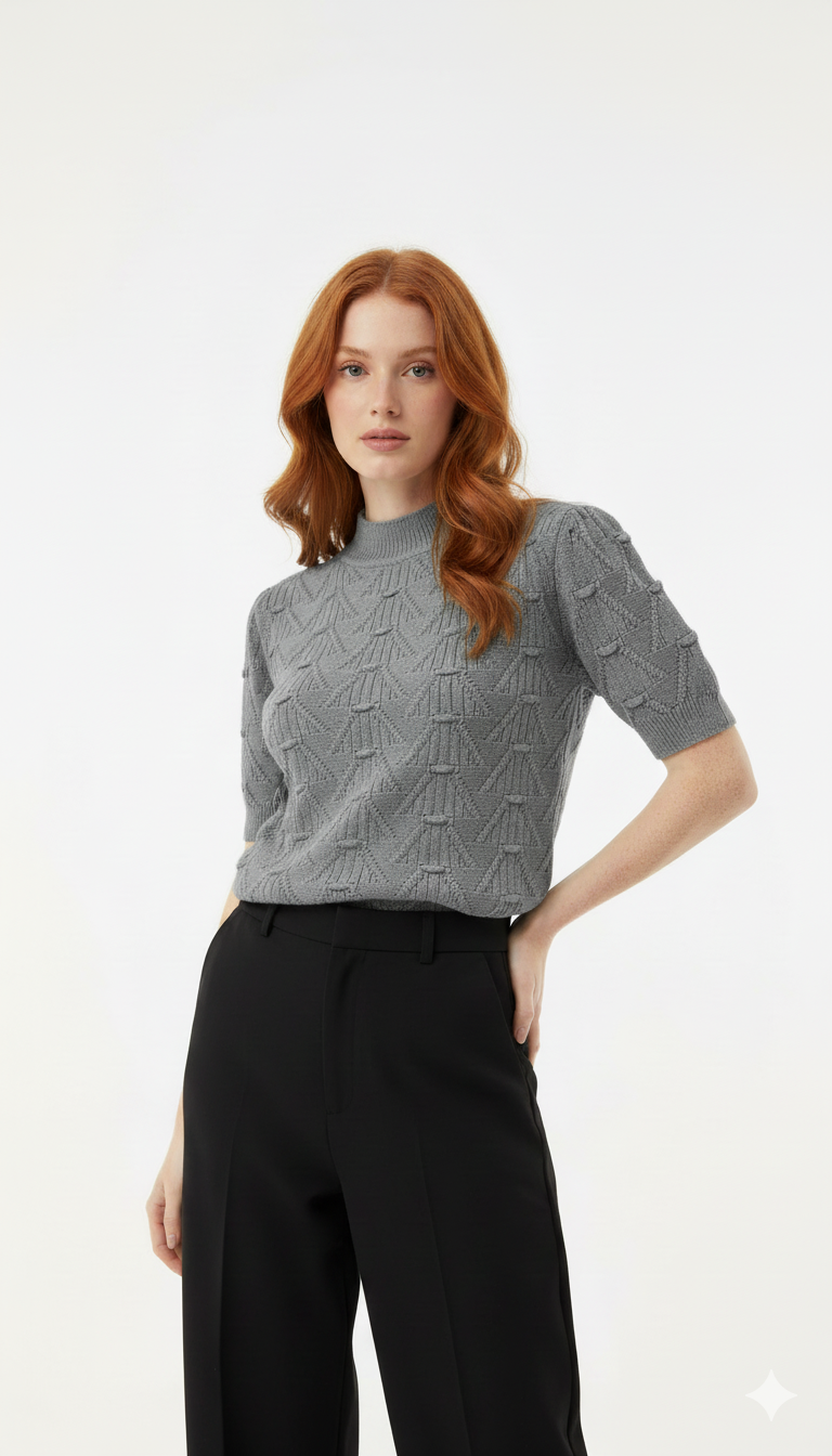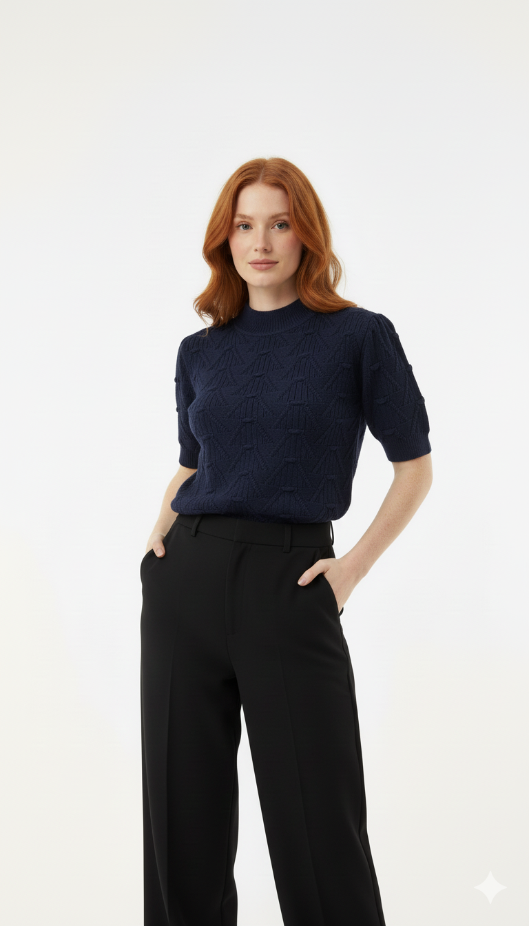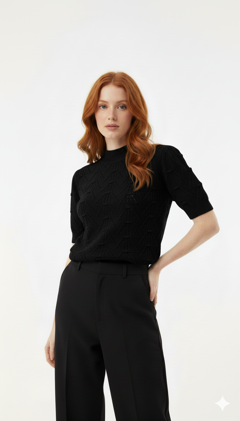 Com modelagem levemente ajustada e mangas curtas, é ideal para compor looks casuais ou mais refinados, combinando com jeans, alfaiataria ou saias midi.
