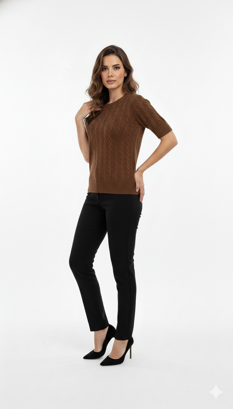 A tshirt trançada une conforto, sofisticação e um design atemporal. Confeccionada em tricot leve, ela apresenta textura trançada delicada que valoriza a peça e traz um visual elegante sem abrir mão da praticidade. O caimento confortável se adapta ao corpo de forma natural, proporcionando liberdade de movimento e bem-estar ao longo do dia.